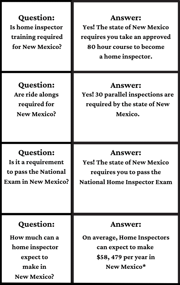 – Complete 80 hours of field experience, including 30 parallel inspections with a licensed home inspector.