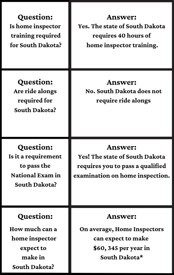 Requirements for becoming a home inspector in the state of South Dakota